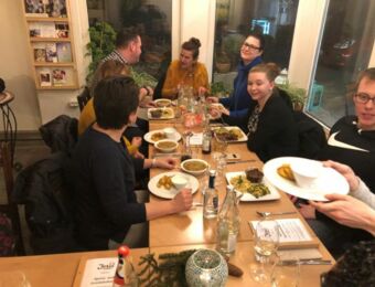 In den schönen Räumen des Restaurants haben wir uns sehr wohl gefühlt und sind auch essensmäßig wunderbar versorgt worden. Das Essen war sehr lecker und wird mit ausgesuchten Bio-Produkten zubereitet. An diesem Abend wurde auch sichtbar, dass sich das FSP-Team auch im letzten Jahr wieder deutlich vergrößert hat. Im Laufe des letzten Jahres sind 15 neue Mitarbeiterinnen und Mitarbeiter zu uns gestoßen. Darüber sind wir sehr froh und dankbar, weil die Arbeit in allen Bereichen - Verwaltung, Hauswirtschaft und auch in der Pflege - deutlich zugenommen hat. Die Gesamtzahl der Mitarbeiterinnen und Mitarbeiter ist dadurch auf 26 angewachsen. Dies zeigt, dass unsere stetigen Bemühungen, für gute Arbeitsbedingungen in unserer Einrichtung zu sorgen, weiterhin Früchte tragen.